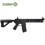 The newest evolution of the G&G Combat Machine line up takes all the standard features that everyone has come to know and respect from the Combat Machine line and improves upon it by offering upgrades and modifications that are never seen at such a low price point, and yet done to such a high level of quality. The CM16 Predator offers an entirely redesigned full metal receiver, borrowing from the ever popular billet style that has been seen more and more in the firearms world. Other improvements include and ambidextrous magazine release, ambidextrous mock charging handle, metal Keymod handguard and a selector switch with a heavy duty detent that gives the user tactile feedback when changing fire modes. While the GC16 Predator knocks other AEGs in its price range out with its aggressive styling, it's whats on the inside that counts most. Installed from the factory is a MOSFET, allowing the user to use LiPo batteries without worrying about damaging the gun and a programmable fire control which allows the shooter to choose either full-auto fire , or three round burst fire modes. Loaded with features and good looks the GC16 Predator is an excellent choice for any airsofter who is in the market for a gun that has all of the latest features and technology.Length: 721mm / 810mm (28.15"-38.19"), Adjustable, Folded / Total