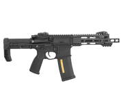 The next generation of variable FPS Ronin AEGs have arrived. KWA’s upgraded VM4 AEG 2.5 gearbox are now drop-in trigger ready allowing users to employ their favorite MOSFETs or electronic triggers to maximize weapon performance. The Ronin T6 PDW is stacked with features derived from extensive user feedback; from the redesigned MLOK handguards, improved PDW stock, ambidextrous charging handle and KWA’s brand new SOCOM-style muzzle brake, the T6 is once again ready to dominate the playing field.