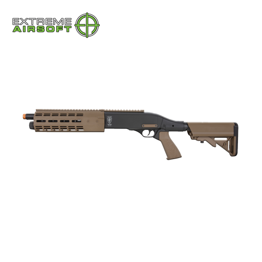 View full detailsGolden Eagle Airsoft M870 MP M-LOK Style 3/6-Shot Pump Action Gas Shotgun - Tan