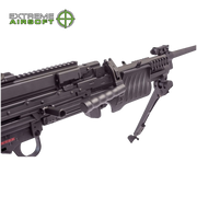 Elite Force Airsoft is bringing extreme duty Heckler & Koch firepower to the AEG line with the HK MG4 "belt fed" airsoft machine gun. This AEG features smart circuitry that will detect the battery type and size you are using as well as over-heat protection. With a 4,000 round detachable box magazine and a 900 round internal hopper (do not fill and use both at the same time) and adjustable hop-up, the MG4 can really send it with mad intensity. The MG4 is equipped with an integral folding bi-pod, side mount Picatinny rails, folding stock with folding wire shoulder support, and folding carry handle. The 4,000 round detachable magazine is powered by the gun's battery and will reliably feed BBs while you have the MG4 deployed. This lightweight, compact machine gun of high airsoft firepower can be carried by one soldier providing full mobility in difficult terrain and in the urban environment.