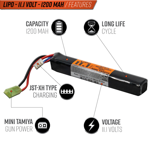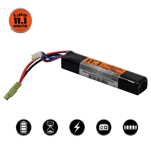 Lithium Polymer Batteries are designed as a light weight, high output power sources for AEG replicas. This 11.1 Li-Po battery can deliver more powe...