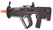 The IWI Tavor Tar 21 by Elite Force includes an 8.4V NiMH rechargeable battery (with charger) for weekend skirmishes. This rifle shoots 345 FPS with metal gears and gear box. The high-strength ABS body holds a metal hi-cap 300 round magazine for full and semi-auto action.