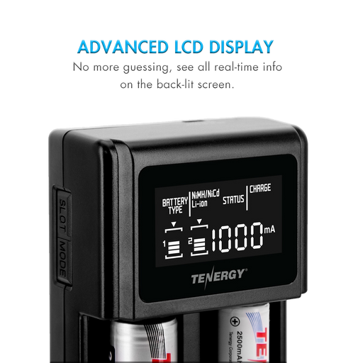 View full detailsTenergy TN471U 2-Bay Universal Battery Charger for Li-ion/NiMH with LCD, Micro USB input