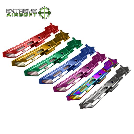 Details: Colors: Red, Gold, Silver, Blue, Green, Purple, Black, and Rainbow Aluminum Construction Style: Curved Compatibility: For AEG, Polarstar...