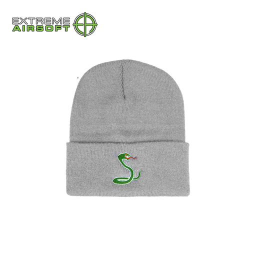 SNAKE Cuff Beanie – Grey One size fits most (stretches to size)Dimensions: 8″ (Cuffed) 12″ (Uncuffed) Height 100% Acrylic