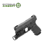- User friendly ambidextrous toggle switch operation for both left or right handed manipulation with momentary/permanent on/off.
