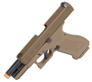 The GLOCK G19X combines the quick handling G19 slide with the G17 full-size grip making what some consider to be the perfect GLOCK. The G19X was GLOCK's entry to the US Armed Forces handgun testing protocols. While the G19X did not win the Defense Department contract, it did win the respect of many of the testers of the platform. The full-size grip and higher capacity combine with the shorter slide and barrel to provide accuracy and capacity in a quicker handling sidearm. This officially licensed Green Gas powered replica from Elite Force Airsoft holds 23 6mm airsoft BBs and launches .20 gram BBs at a field safe 300 FPS. Hit your mark by tuning the adjustable hop-up for your favorite Elite Force BB. G17 Gen 3 and G17 Gen 4 GBB magazines will also work in the G19X.