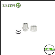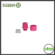 The official LA Capa Customs thread adapters! The cap screws in two different ways for different looks. The adapters come in 12 different colors and are very light weight. This is perfect for hiding longer inner barrels as well as for tracer units.