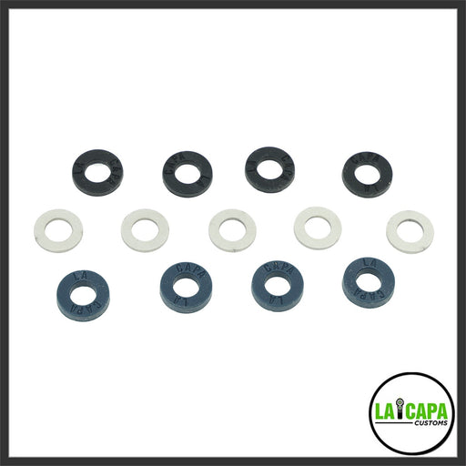 The LA Capa Customs short stroke kit: featuring 4 softer and thicker rubbers, and 4 harder and thinner rubbers. Paired with 5 steel washers designe...