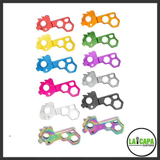 The official LA Capa Customs Rear Grip Safeties! They come in 12 different colors, light weight, and adds that clean look to your hi capa!