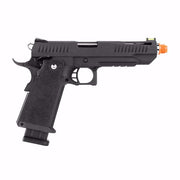 Elite Force Airsoft is proud to offer the Modify-Tech Trinity Hi-Capa 2011 GBB airsoft pistol. With a high quality metal frame and aluminum slide that ensures durability and a realistic feel, providing an authentic shooting experience every time. This Hi-Capa rocks full blowback action with a state-of-the-art green gas mechanism which offers a potent recoil simulation that closely mimics the feel of real steel. The high-capacity magazine holds an impressive 28 airsoft BBs, reducing the need for frequent reloads and keeping you in the action longer. The precision-engineered barrel allows for exceptional accuracy, making it ideal for competitive shooting and target practice. This slick blaster also features a threaded muzzle (14mm CCW), skeletonized trigger and hammer, along with adjustable hop-up, Picatinny Rail, and both thumb and grip safeties. The Trinity Hi-Capa 2011 GBB launches .20g BBs at 310 FPS. Whether you are participating in high-stakes airsoft competitions or practicing at your home range, the Modify-Tech Trinity Hi-Capa 2011 GBB Airsoft Pew Pew is the perfect fusion of style, performance, and innovation. Elevate your game and dominate the airsoft field with this exceptional handgun.