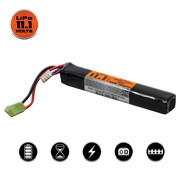 The Valken 11.1v 1200mAh Stick Type Lipo airsoft battery is a high performance lithium airsoft gun battery. This Lipo battery has no memory effect, and does not require discharging. This stick Lipo battery can hold a charge for months, and features a small Tamiya plug and XH 4-pin charging connector. They fit inside most buffer tubes and crane stocks.