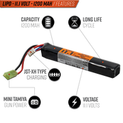 Valken 11.1V LiPo 1200mAh 15C Stick Battery (Mini Tamiya)