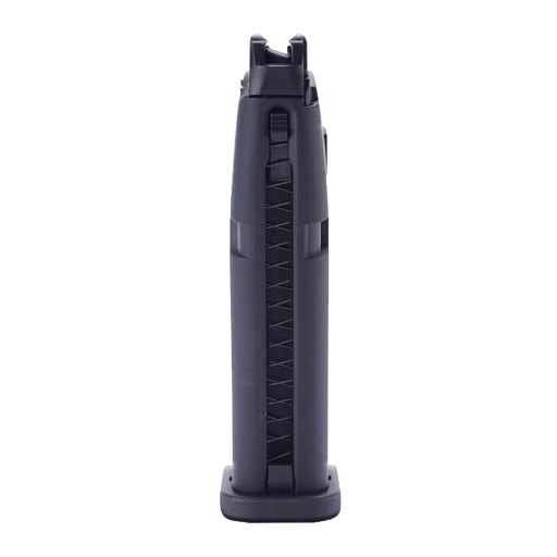 Metal alloy construction High tension spring ensures reliable feeding 26 round capacity (Co2) 24 round capacity (Green Gas) Enlarged baseplate