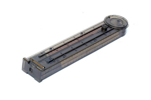 Features Injection molded polymer construction Factory spare magazine 40 or 200 round capacity Easy to access winding wheel Translucent magazine ...