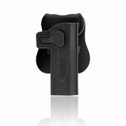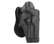 The Cytac OWB Holster is constructed of high-tech polymer, and perfectly fit for each specific airsoft pistol. This fitted holster has a quick-release/quick-locking button that allows for a quick draw and automatic locking when your gun is reholstered. They are designed for easy access and drawing your pistol without impediment, and can rotate 360-degrees to adjust the holster cant for ultimate versatility. These OWB pistol holsters are very comfortable with their soft silicone paddle to securely fit holster to belt. They provide a fast and easy draw while still proving great retention. This gun holster is worn outside the waistband.