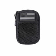 - MOLLE Utility pouch to hold and organize day to day items. Black pouch color with black and gray subdued US Flag.