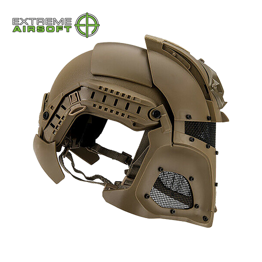 Specifications Material: Polymer Helmet, Mask Frame / Steel Mesh Color: Tan Compatibility: Adjustable Head Straps Package Includes: 1X Full Face T...